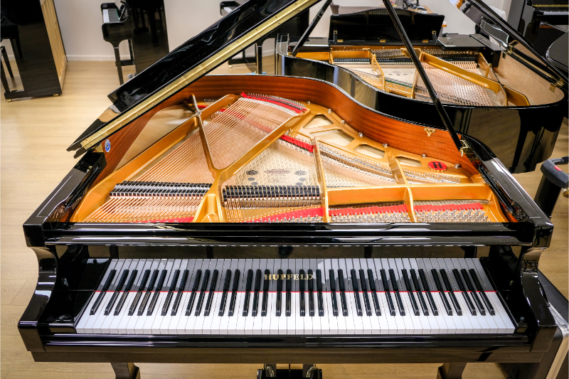 This is the entry into the Hupfeld grand-piano line-up and thanks to its wide-tail design, just by listening to this gorgeous piano, you would have no idea that it is only a baby at 160cm (5’3”) long. It sounds like a much larger grand piano because this unique wide-tail design allows for a significantly larger soundboard and a longer bass-string length. Not only that but the expanded rim has allowed the bridge placement to be carefully redesigned for optimum sustain and depth of tone.